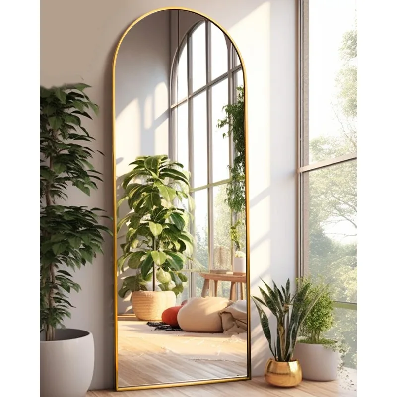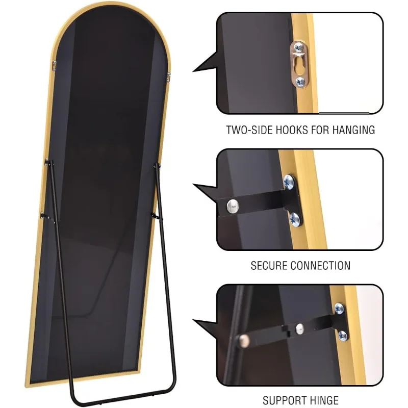 ✔【DESIGN】The top of the floor mirror is designed with a unique smooth arched-top frame. The thin aluminum alloy frame makes the mirror looks more classic and it is very conspicuous in any space and makes your room look classy.